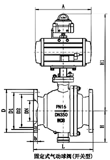 气动固定式球阀是由角行程气动执行器与固定式球阀组成,采用上下阀杆固定阀芯(轴支式)和可动密封座设计,工作更稳定。气动固定式球阀可配阀门定位器输入控制信号(4-20mADC或1-5VDC)气源即可控制运转。亦可配行程限位开关、电磁阀、三联件及0.4-0.7MPa气源可实现开关操作,并送出二对无源触点信号指示阀门的开关。气动固定式球阀具有自动补偿功能、双向密封阀座之间无间隙回转时具有很大的剪切力及自洁功能。尤其适用于帝制纤维和有微小固体颗粒的悬浊液及粘性介质的通断。气动固定式球阀可广泛应用于造纸、石化、化工、冶金、电力、环保、石油、轻工等工业部门的自动化控制系统中。 主要特点 1、气动固定式球阀采用固定球设计,相对运动部位均采用磨擦系数极小自润滑材料,因而操作扭矩小,此外密封润滑脂的长期密封,使得操作更加灵活。 2、阀门可采用高平台结构,ISO5211连接标准,能使安装电/气动执行器更为专业化。 3、气动固定式球阀采用全通径或缩径设计,流通阻力小。 4、金属硬密封气动固定式球阀采用双向金属可动密封结构,具有自动补偿及自洁功能,密封性能优越。 5、气动固定式球阀采用固定球设计,并增加了预紧力弹簧,使得球阀具有自动泄压功能。 6、每个球阀都有两个可动密封座,两个方向都能密封,因而安装时不须考虑介质的流向。 7、具有防火防静电结构,在阀杆与阀体及阀杆与球体之间设置导电弹簧,避免静电打火点燃易燃介质。确保系统安全。 8、耐火结构双重保护,当万一发生火灾而使密封圈烧损时,球阀的各个密封部位均能形成金属对金属的硬密封结构。 9、自动泄压结构,当滞留在阀门中腔的液体介质由于温度升高而气化,从而中腔压力异常升高时,中腔介质能依靠本身的推力推动阀座而自动泄压,从而确保阀门安全。 主要技术参数 阀体 阀体形式 | 两段式铸造阀体 | 公称通径 | DN50~1000mm | 公称压力 | PN1.6、2.5、4.0、6.4、10.0 MPa;ANSI 150 300 600 900 LB;JIS 10 20 30 40 K | 连接形式 | 法兰式 | 法兰标准 | JIS、ANSI、GB、JB、HG等 | 阀盖形式 | 一体式 | 压盖型式 | 螺栓压紧式 | 密封填料 | V型聚四氟乙烯填料、含浸聚四氟乙烯石棉填料、石棉纺织填料、石墨填料 |